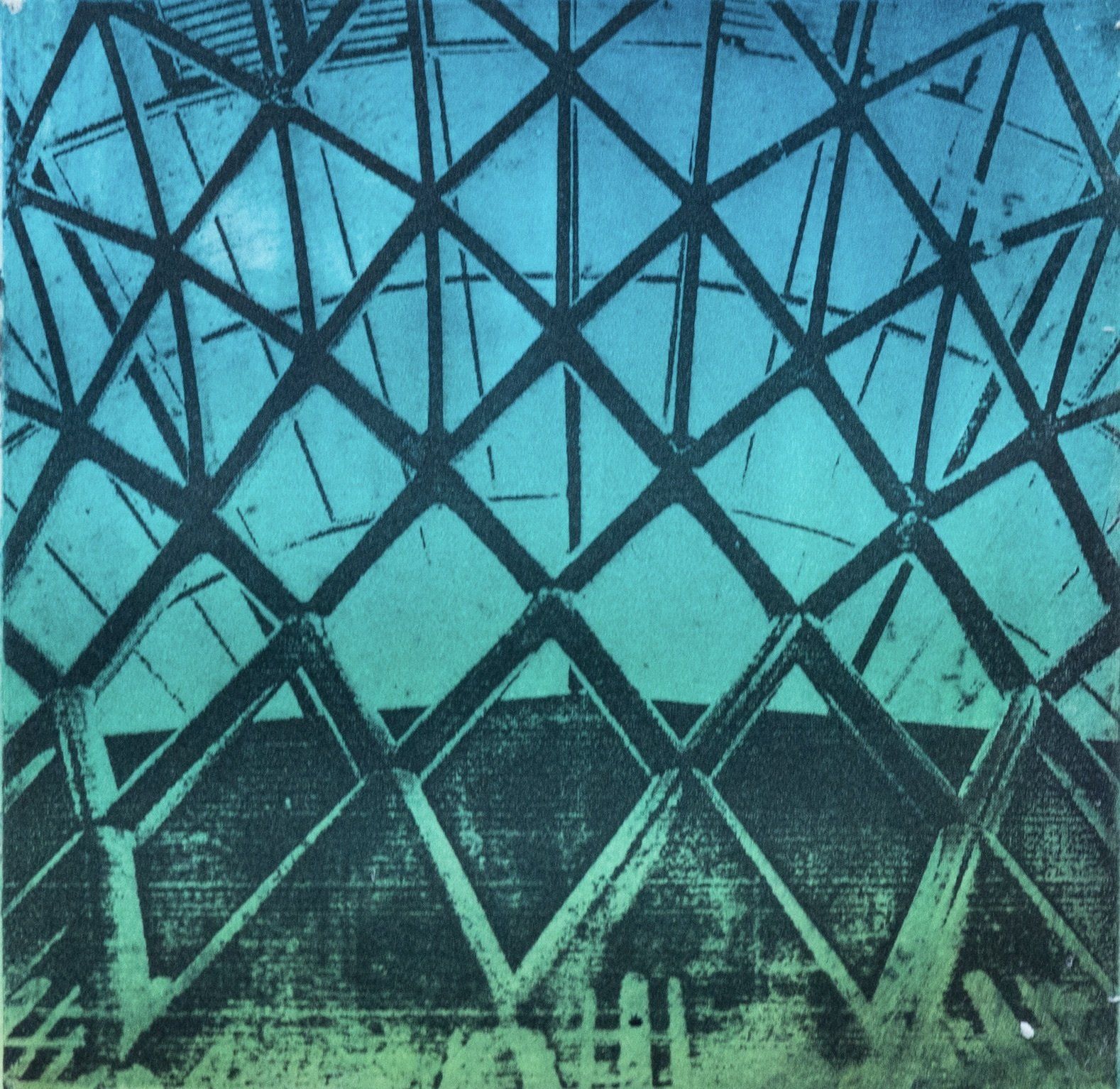 My artistic process is grounded in my Architectural studies and is often my starting point.Through the process of etching, architectural forms take on a new dimension; abstracted and losing their physical presence becoming two dimensional in tone and form.This has also led to exploration of figures in spaces and landscapes with layering, textures and tonality.